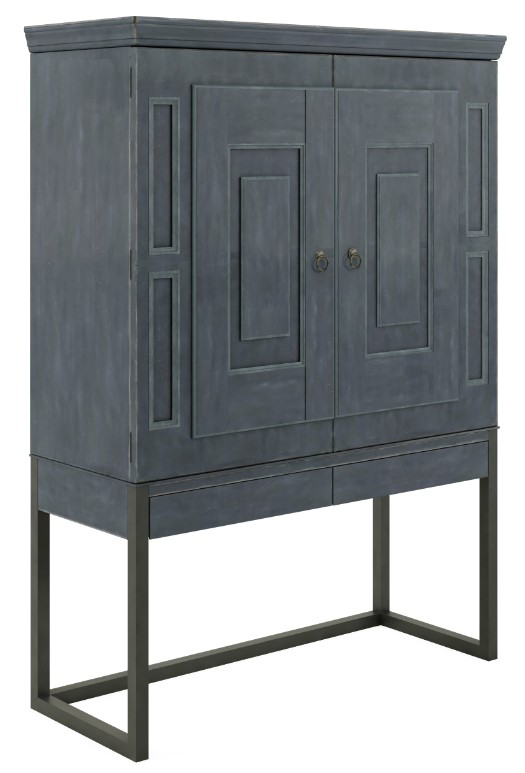 The lower interior drawer offers a drop-down front, providing a convenient workspace when needed. Additionally, the wire management cut-outs make this piece a functional space for a home office. The Slate finish brings a touch of contemporary allure, while the Burnished Brass base adds a vintage-inspired charm.