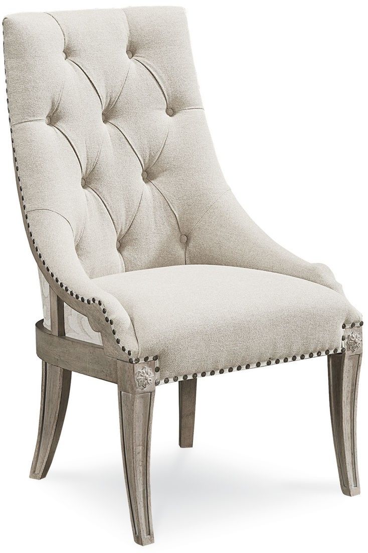 A.R.T. Furniture® Arch Salvage Reeves Host Chair with button tufted and exposed wooden frame.Read More