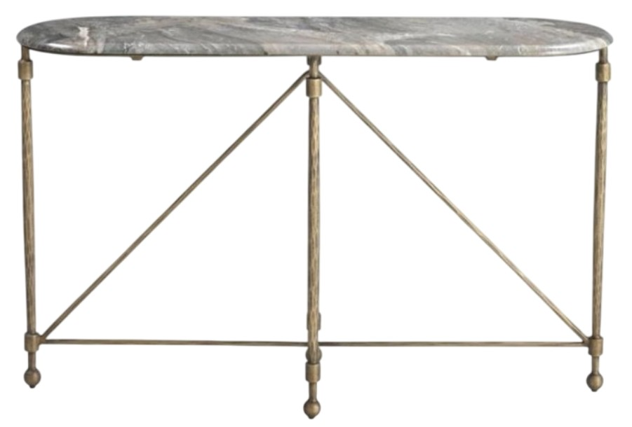 Italina grey marble top with cast iron base in bronze finish airs on the side of Classic design and artisan's handiwork. Step into a world where home décor becomes a story of love and elegance.Read More