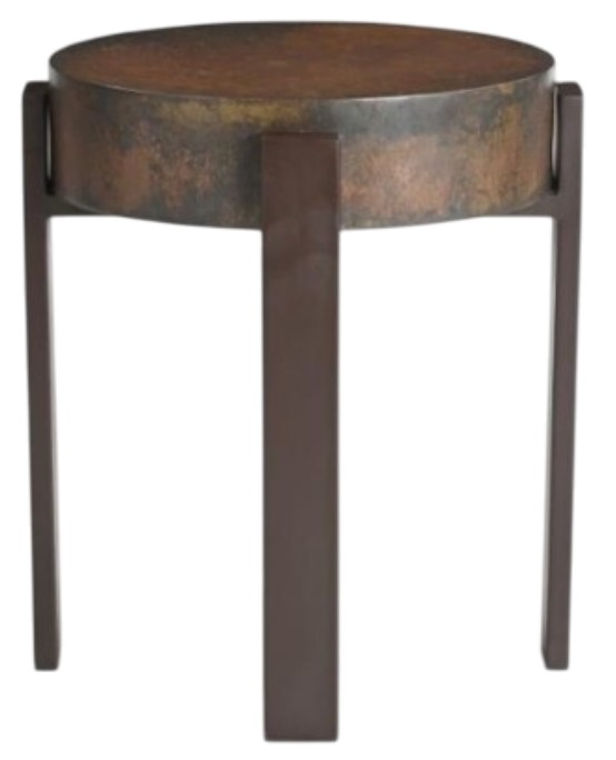 MeMetal side table surface ringed with a metal band and four (4) plank metal legs; antique rust bronze finish on table top. Step into a world where home décor becomes a story of love and elegance.Read More