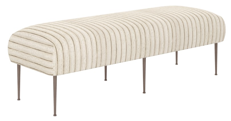 Pillows aren't just for the bed. This beautiful bench provides a bedside option that's as soft and cushioned as it is stylish. Its rounded top is finished in elegantly tailored upholstery, supported by delicate and slender tapered legs finished in burnished bronze.Read More
