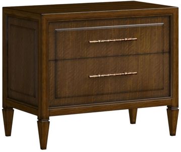 New traditional nightstand in quartered walnut with faux bamboo hardware in burnished gold finish. A reinvention of 19th-Century English classics infused with Chinoiserie details. Collections features pieces finished in stunning clear quartered walnut veneer, mixed with selected items in Candy Apple Red, Black and Frosted Bronze bridging timeless elegance with modern sofphisticationRead More
