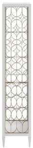 The etagere features a slender, rectangular frame finished in a crisp, clean white that brightens any interior. The open design showcases a series of glass shelves, providing ample space for displaying decorative items, books, or plants. The frame is further enhanced by its unique, geometric fretwork panels, crafted from a warm metallic material that adds a touch of glamour and visual interest. The etagere rests on slender, tapered legs, adding a touch of lightness and sophistication. The Eave II Etagere is designed to be a statement piece, blending unique design with practical display functionality. Its refined design allows it to seamlessly integrate into a variety of interior styles, adding a touch of artistic flair and contemporary elegance.