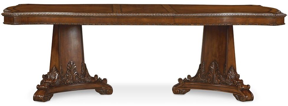 Old World Double Pedestal Dining Table features heavily ornamented pedestal bases and leaf carved gadroon edging.Read More
