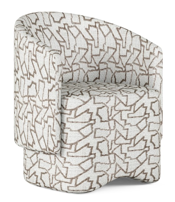 Make a splash in a monochromatic palette with this abstract patterned upholstered barrel chair. A gently curved back is as stylish as it is supportive, and and creates and overlay effect with the base of the chair. Bold and eye-catching, this chair adds a touch of couture style to any room.Read More