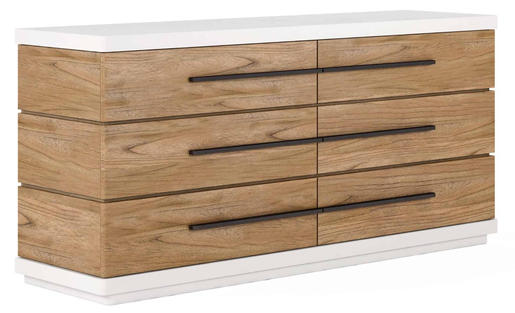Structure and symmetry define the architecturally inspired Portico collection, exemplified by this dresser. The sleek white top and plinth base add a light touch, surrounding the textural beauty of warm, sienna wood finish.Read More