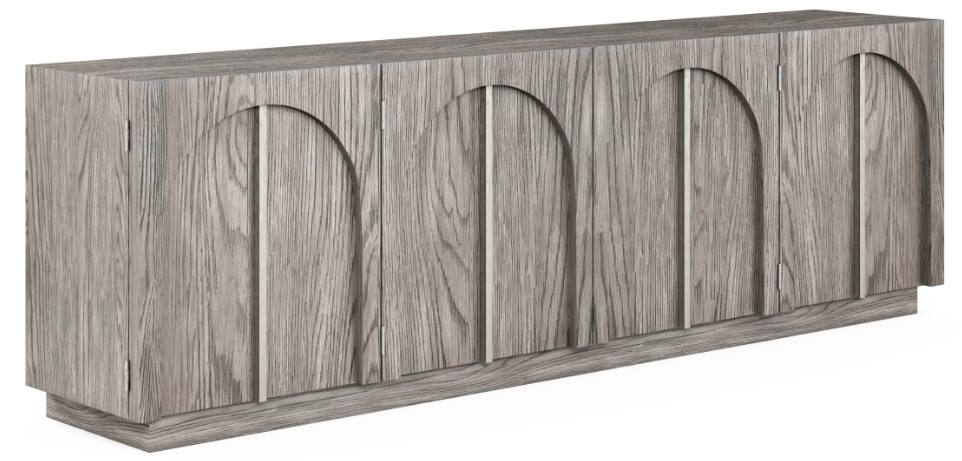 Modern form meets practical function in this stylish entertainment console, crafted from poplar solids and veneered in oak with a soft grey mink finish. Four doors open to reveal four adjustable shelves with convenient wire management for electronic devices, as well as plenty of storage for all your living room entertainment essentials.Read More