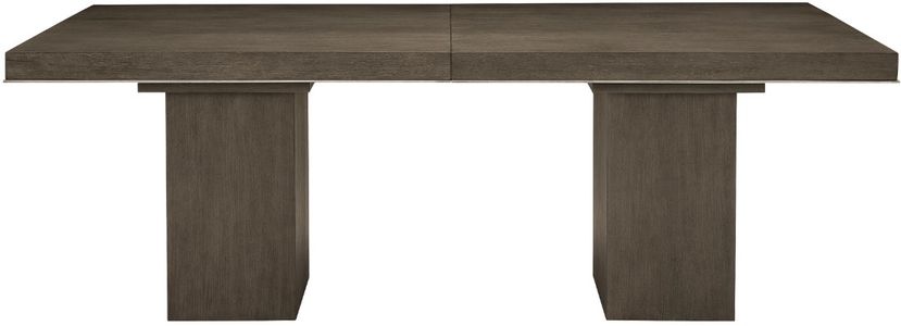 Bring a sleek and refined update to your dining room with the Linea Dining Table. This rectangular shaped table features a one 20" table leaf and cast an aluminum bead trim around apron bottom in extured graphite finish for a unique style table top.Read More