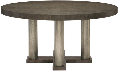Bring a sleek and refined update to your dining room with the Linea Dining Table. This round shaped table features a casted aluminum posts in textured graphite finish with a cross shaped wood base and shown in cerused charcoal finish for a unique style table top.Read More