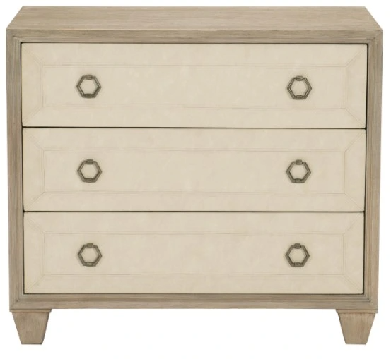 Inspired by Californias laid-back vibe and unique sense of style, the Santa Barbara nightstand features a clean form, an uncommon mix of materials and a light color palette. The three drawer fronts are wrapped in performance fabric with a faux leather look and feel.Read More