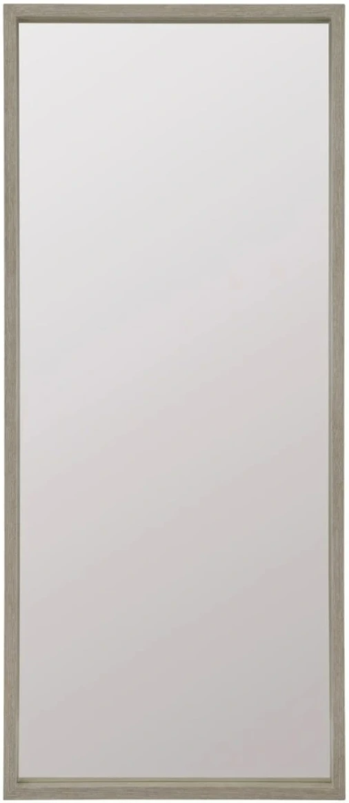Rectangular wood-framed floor mirror in Dune finish with inset, non-beveled mirrored glass