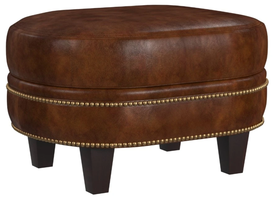 The Richardson ottoman is offered in hundreds of leather options. The standard nailhead trim #9 in natural finish. Other decorative nailhead finishes are available. It comes standard in a mahogany finish. Other finishes are available also.Read More
