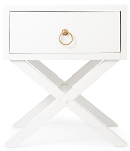 This end table is transitional modern in a fresh white color and the glam of gold metallic hardware to enjoy in every room space. The X design of the legs add an attention to the design detail that will not go unnoticed.Read More