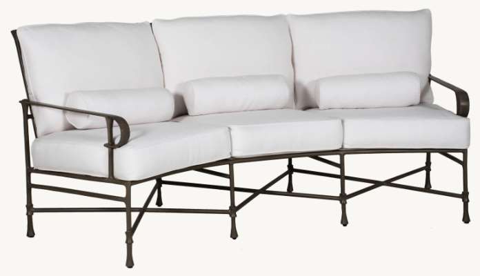 Sown in white fabric and dark gray metal finish. Beauty and elegance of a French garden design are found in the Bordeaux Cushioned Crescent Sofa. Featuring a durable multi-stage powder coat finishing and optional artisan applied antiquing.Read More