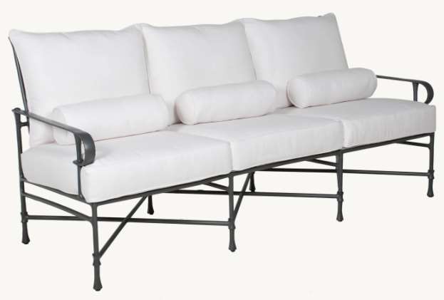 Sown in white fabric and dark gray metal finish. Beauty and elegance of a French garden design are found in the Bordeaux Cushioned Sofa. Featuring a durable multi-stage powder coat finishing and optional artisan applied antiquing.Read More