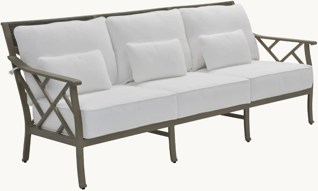 Designed for lavish lounging, the 3-seater Korda Sofa brings indoor comfort to any outdoor space. An ode to the freedom and relaxation of sailing, its Chippendale-inspired design features a decorative hand-painted topper that simulates authentic nautical rope.Read More