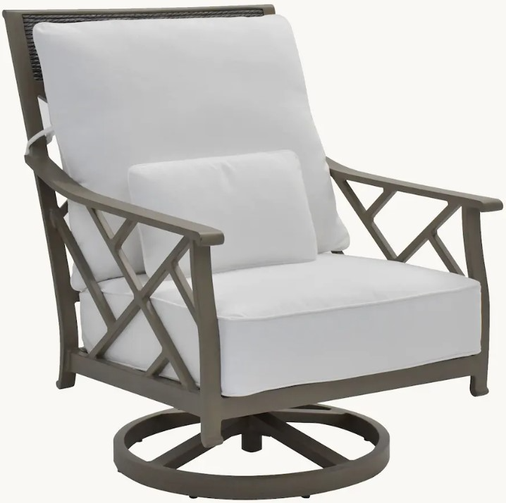 Indulge in the decadent luxury of the handcrafted Korda High Back Lounge Swivel Rocker. An ode to the freedom and relaxation of sailing, the Chippendale-inspired design features a decorative hand-painted topper that simulates authentic nautical rope.Read More