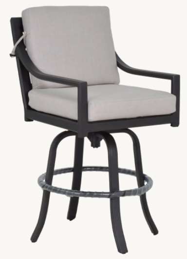 The handcrafted Saxton Cushion Swivel Bar Stool brings the comfort of motion to your outdoor bar seating area. The decorative Xaria side and back motif showcases the symmetry of geometric pattern mosaic tiles with perfect balance of strength and elegance. It features plush, tailored cushions available in a wide selection of sumptuous fabrics.Read More