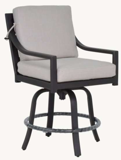The handcrafted Saxton Cushion Swivel Counter Stool brings the comfort of motion to your outdoor high top seating area. The decorative Xaria side and back motif showcases the symmetry of geometric pattern mosaic tiles with perfect balance of strength and elegance. It features plush, tailored cushions available in a wide selection of sumptuous fabrics.Read More