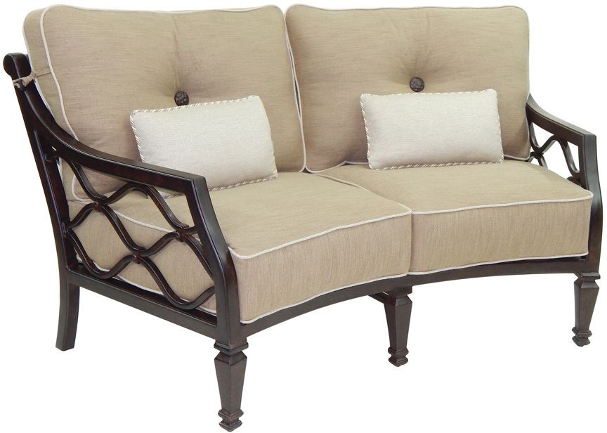 Castelle® Villa Bianca Cushioned Crescent Loveseat with open profile and two accent pillowsRead More