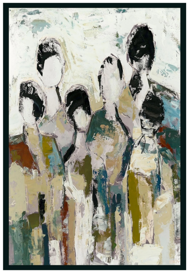 In the delicate strokes of Buddy Whitlock’s art, six figures gather—a symphony of connection and unity. Encased in a thick black shadow frame, this piece invites a timeless romance, where every glance and gesture tells a story of love, belonging, and the beauty of togetherness.Read More
