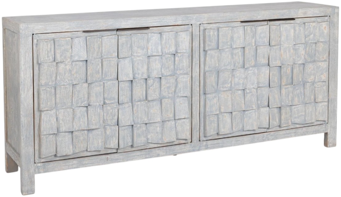 Bring natural warmth and texture to your home with this reclaimed pine Buffet. Its hand-crafted woven wood design adds organic charm, while media holes in the back make it perfect for entertainment setups. The adjustable shelf offers flexible storage for dinnerware, décor, or electronics.Read More