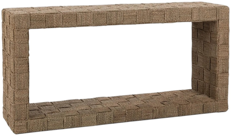 This basket-weave console table is perfect for entryways, living rooms, or dining spaces, an artful blend of natural materials and modern design.