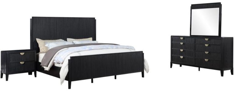 This 4-piece bedroom set in black showcases a modern panel design with clean lines and a sleek finish. It combines durability and style, creating a sophisticated and cohesive look that enhances any bedroom with a contemporary touch.Read More