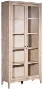 This 93" tall cabinet features a classic design, solid reclaimed pine wood construction, and a light warm wash finish to create a timeless look. Two large wood-framed glass doors open to five shelve compartments that can perfectly showcase collections of books, framed photographs, decor, or kitchenware.Read More