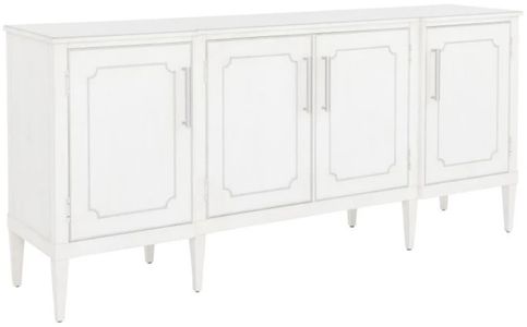 Taking a modern approach to traditional design elements, our Camille dining collection includes a dining table, credenza and bar cabinet. Crafted from rubberwood solids and finished in linen with a contrast highlight stripe in antique pewter.Read More