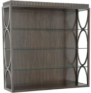 Finished in Tahitian Pearl with oval, Black Steel metal accents on the end panels and three-way adjustable touch lighting with three adjustable glass shelves.