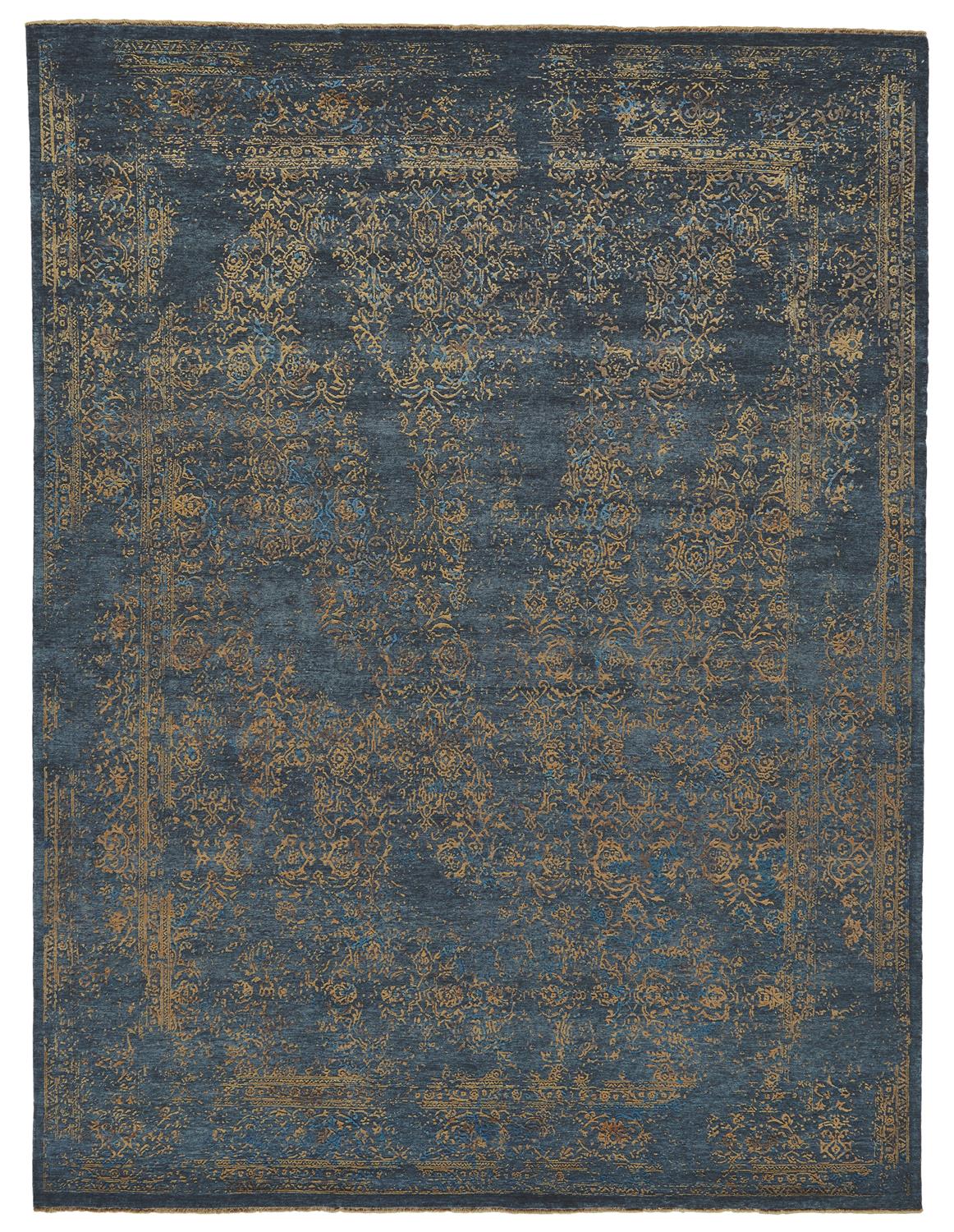 The Doshi Collections elegantly distressed designs effortlessly anchor transitional rooms and lend more traditional settings a subtle edge. Impeccably hand-knotted each piece features scrolling designs in viscose which shimmer against wool fields.Read More