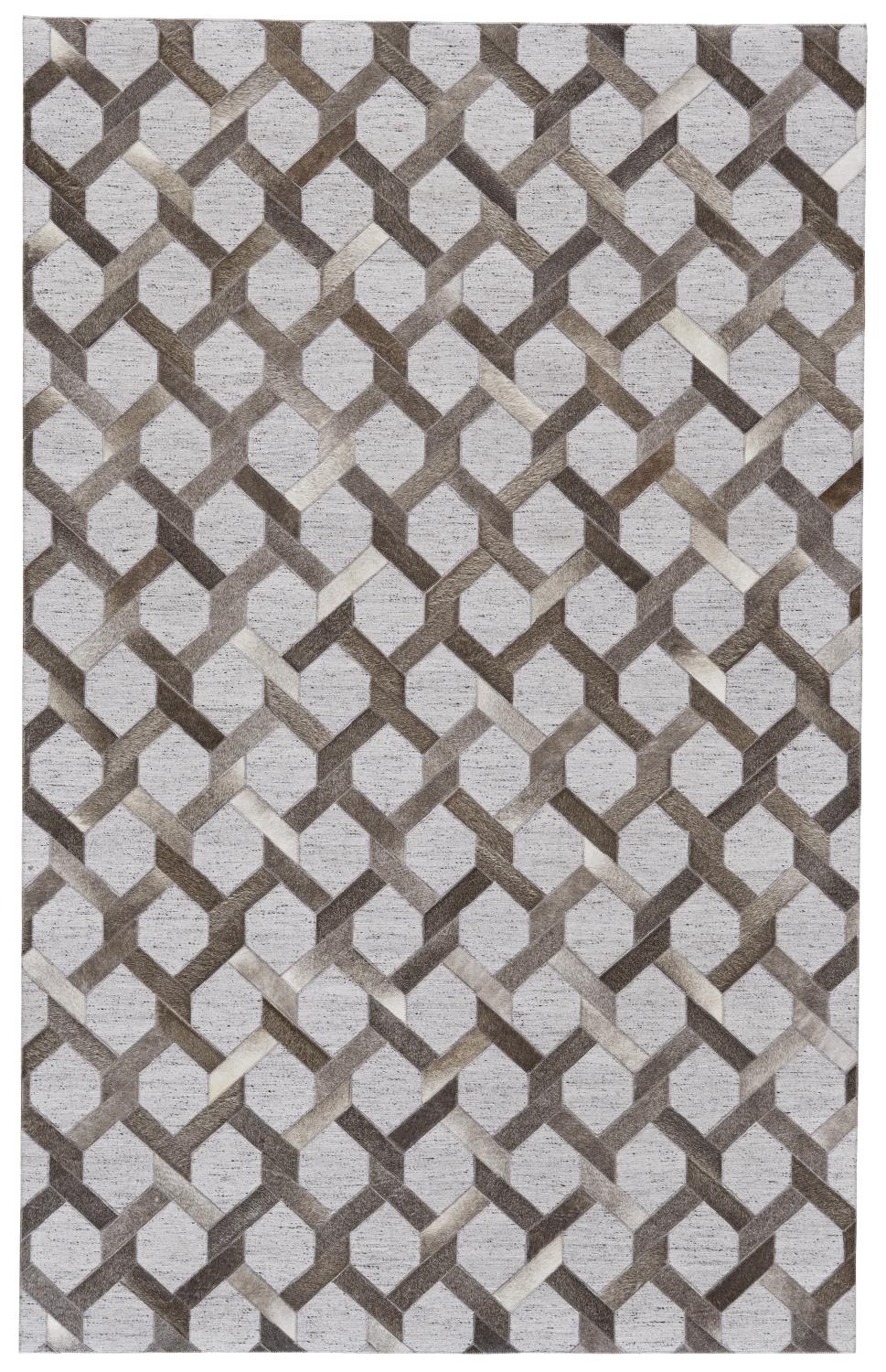 Rustic design meets modern artistry with the Feizy Fannin Collection. Bold geometric patterns crafted from animal hide demand attention on design-friendly palettes like sand silver and slate. Handmade with viscose and leather each rug delivers visual appeal and textural interest to infuse any space with distinctive style and contemporary charm.