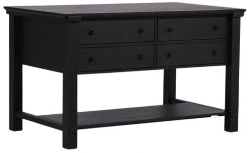Make room for more prepping, gathering and storage, in kitchens large or small. This functional island features four wide drawers on one side, a bottom shelf below, and room for stools. Designed with an oak cradle frame that holds the tabletop above with exposed joint details on the shelf and legs below for a benchmade look and feel. Crafted from stained oak with iron accents.Read More