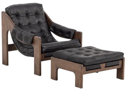 A Seventies-era style inspired by a flea market find, a dramatically tufted sling seat of black top-grain leather angles at the just-right pitch for total comfort, with wide, brown ash framing.Read More