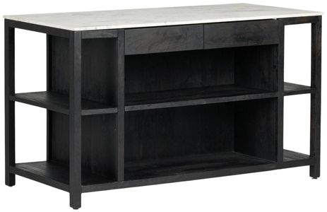 Create space and style with a kitchen island made from smoked acacia and solid white marble. Roomy open shelving offers ample options for storage and display, while dual drawers keep frequently used items within reach.Read More