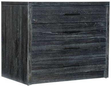 With a global and minimalist aesthetic, the Commerce and Market lateral file is crafted of mindi veneers with a black finish allowing the wood grain to show through. Metal bar pulls in a charcoal finish give a clean, monochromatic feel. Features two utility drawers and one file drawer with pendaflex filing system.Read More