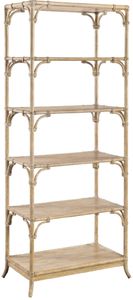 With a tropical retreat-inspired vibe and laid-back style, the Retreat Pole Rattan Bookcase is crafted of oak veneers featuring a Bamboo motif and rope accents for an organic appeal. Finished on all sides with five fixed shelves, the bookcase is finished in the sand-colored Dune.Read More