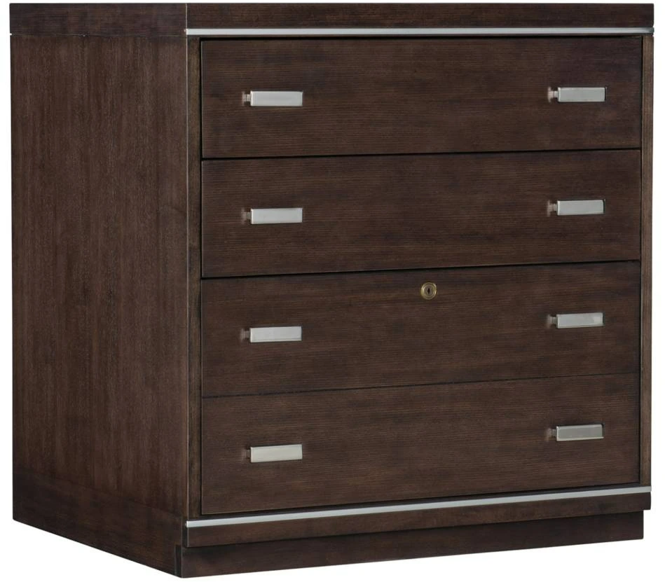 Add stylish work-from-home storage to any space or keep your household organized with the versatile House Blend lateral file. Featuring a sleek combination of the dark roast finish over quartered ash veneers, silver metal trim and polished stainless bar pulls.Read More