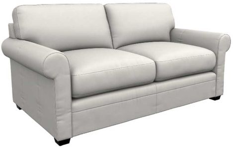 Rolled arms, decorative wood legs and welt trim lend laid-back refined style