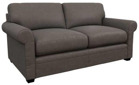 Rolled arms, decorative wood legs and welt trim lend laid-back refined style