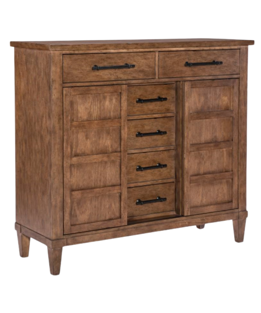 Modern redefines farmhouse style with an eclectic two-toned whole home collection. Featuring mixed media and some Craftsman design elements, the collection is constructed of Hardwood Solids and Pine Veneers. The main finish is the clean and refined vintage pine, accented by Ironwood black bases and hardware.Read More