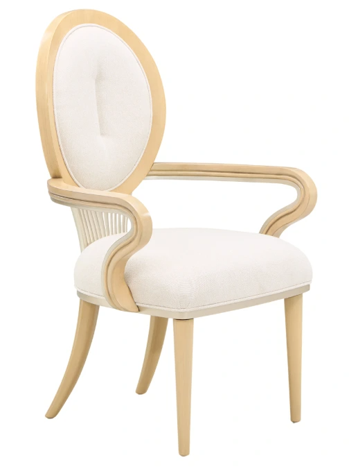 With its graceful silhouette and thoughtfully crafted details, the Camellia Field Dining Arm Chair is a statement of refined comfort. The oval back, adorned with camellia marquetry, pairs beautifully with the warm caramel finish and champagne gold accents. Upholstered in soft chenille, it combines luxurious materials with a supportive design, offering an inviting and sophisticated dining experience.Read More