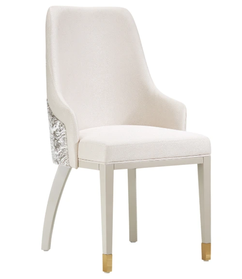Destined to be a striking addition to any dining space. Wrapped in understated jacquard fabric, this exquisite arm chair is elevated by gracefully curved arms adorned with titanium gold accents, adding an extra layer of opulence to its already stunning design. The true hallmark of this piece is the breathtaking marble-look velvet on the back.Read More