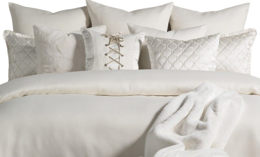 Glowing with glamour, the Hailey comforter set showcases a modern style perfect for elegant homes. This set's main fabric features a raised texture with embroidered accents on the accessories. Its solid ivory hue blends effortlessly with a range of color palettes and aesthetics.Read More