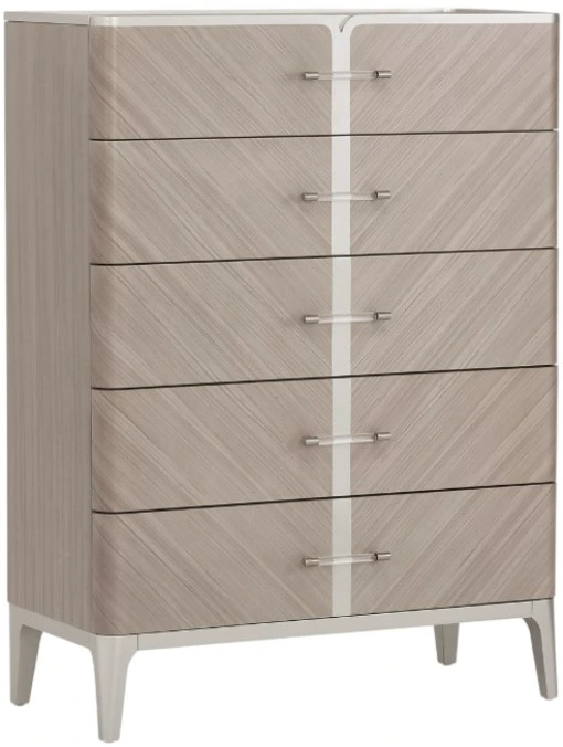 This chest combines refined elegance with practical storage. Featuring a stunning platinum frame with a soft silver mist finish, this chest adds a touch of luxury to any bedroom. With spacious drawers and durable construction, it provides both style and functionality for organized living.Read More