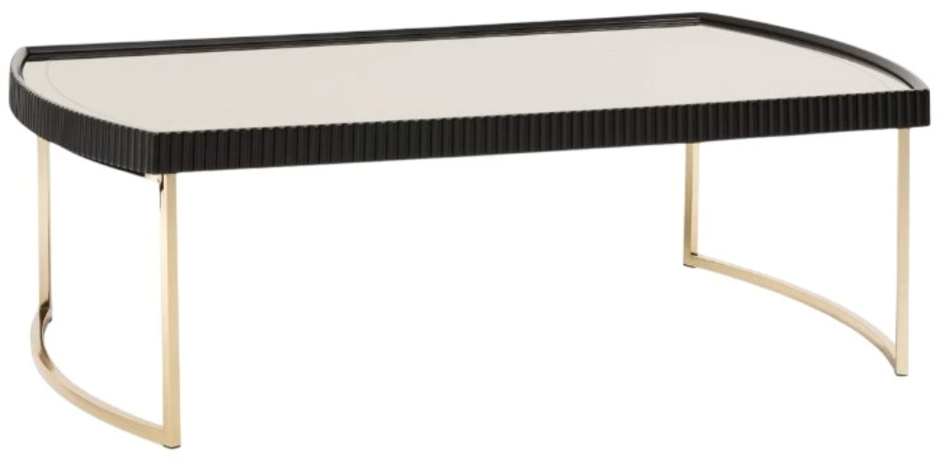 The Lisbon Cocktail Table embodies sophistication and luxury with its silken matte black top, gold legs, and mirrored inlay. Pairing this exquisite centerpiece with the Lisbon living room set offers a refined atmosphere for upscale entertainment and relaxation, inviting intimate conversations in a sumptuous haven.Read More
