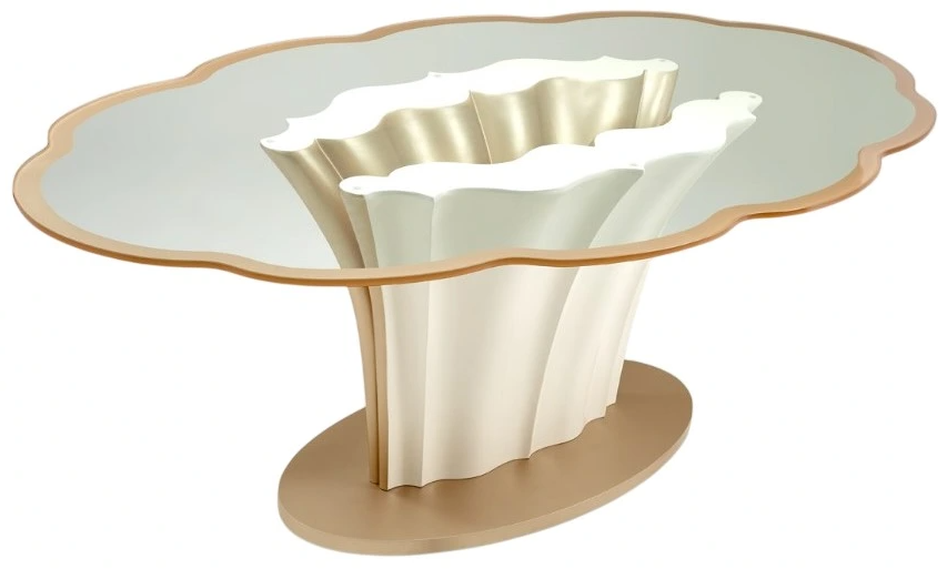 Legs and table edge are finished in creamy pearl