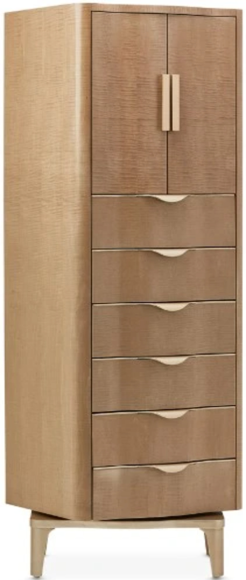 Every accessory deserves its place. The Malibu Crest Swivel Lingerie Chest is the perfect spot for your delicates and accessories alike with velvet lined drawers, a removable jewelry caddy and a full-length mirror on the back. Organization has never been this chic!Read More