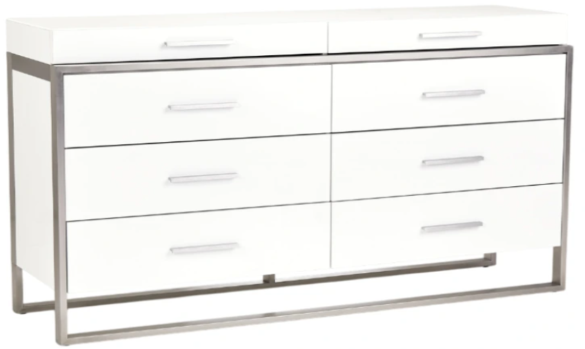 Complete the look! The Marquee Dresser and Mirror set will change the way you look at bedroom design. With tiered top drawers, a beautiful mix of matte and gloss lacquer finishes, and brushed stainless steel, this pair is exactly what you want in your contemporary living space.Read More